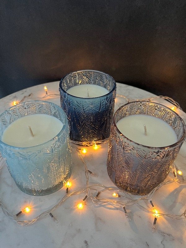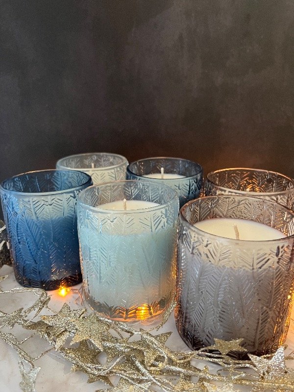 Nuestra vela en vaso de vidrio tallado se presenta como una pieza atemporal, donde la textura de hojas en relieve juega con la luz y crea un brillo suave y envolvente. Una presencia que transforma el ambiente sin esfuerzo.